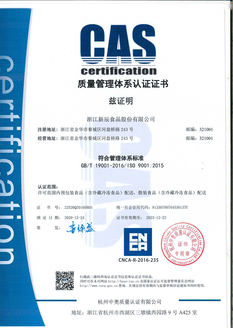 (1998年改制為浙江新辰食品有限公司)